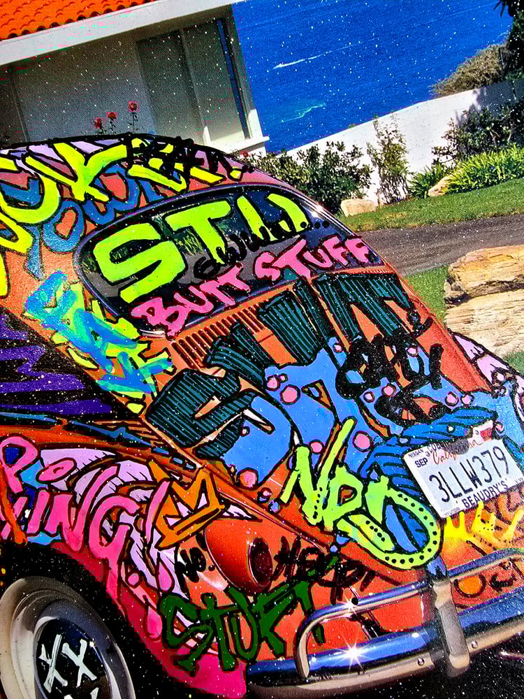 Acrylic and glitter top coat.